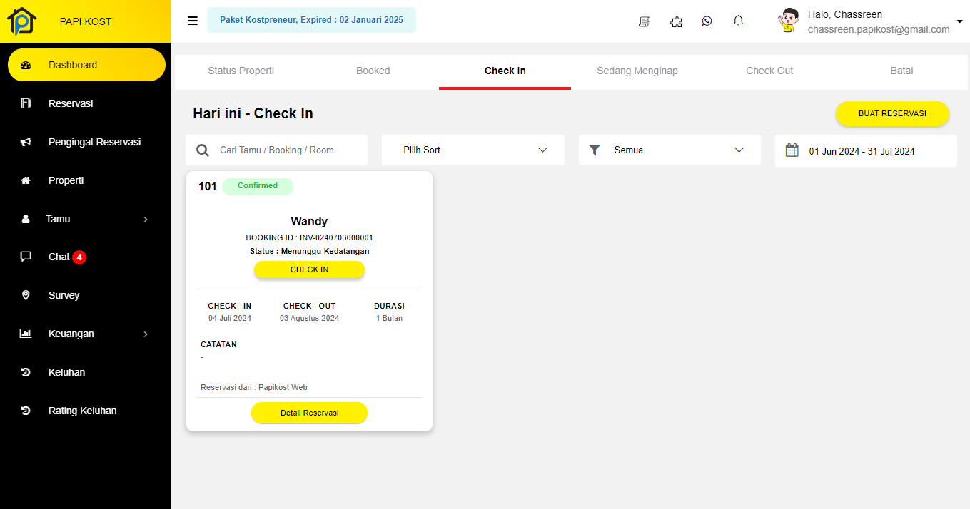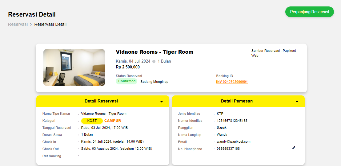 Masa tinggal penghuni sudah mau habis, tinggal beberapa hari lagi, dan penghuni mengkonfirmasi ingin melakukan perpan ...