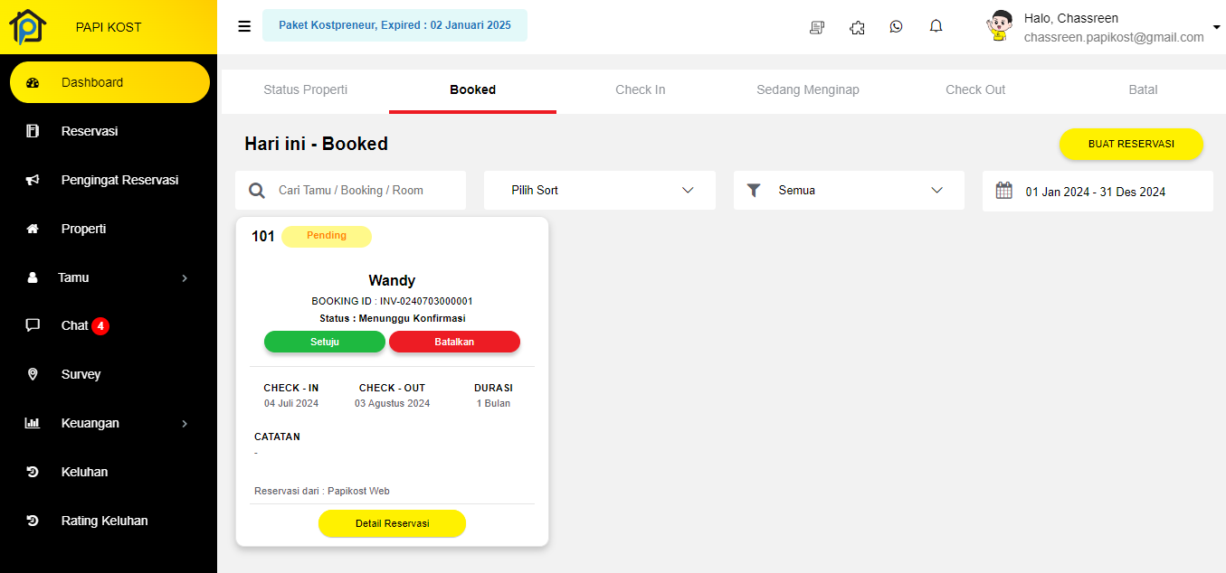 Terdapat booking yang masuk apa yang harus saya lakukan dan apa saja yang harus diperhatikan?